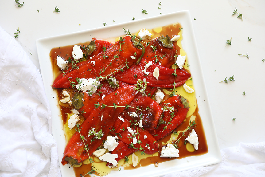 • 3 печени червени чушки (обелени и нарязани на ленти)