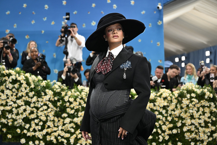 37-годишната певица разкри, че е бременна с третото си дете от приятеля си A$AP Rocky, и то по впечатляващ начин: като показа порасналото си коремче на червения килим на Met Gala 2025.