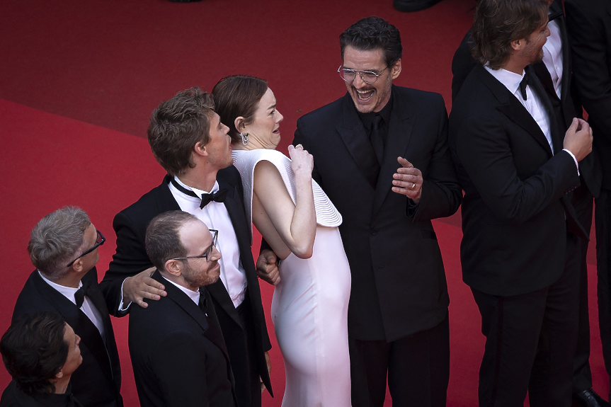 „Ах, да си Ема Стоун, пазена от Педро Паскал и Остин Бътлър от една пчела“, написа един потребител в X.