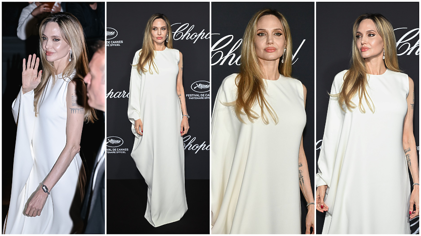За случая Джоли заложи на кремава рокля без презрамки от Брунело Кучинели и колие с диаманти, което подхождаше на обеците ѝ от Chopard.