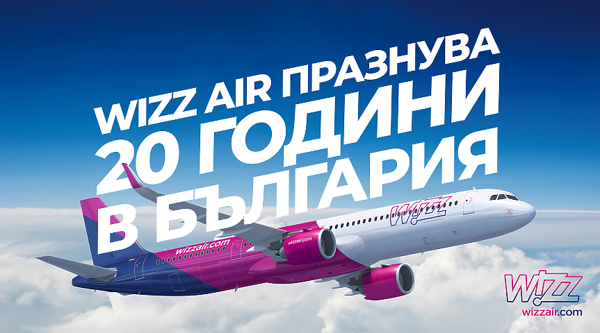 Wizz Air днес отбелязва 20-годишния си юбилей от старта на дейността си в страната с голяма изненада за всички пътници – до 20% намаление на избрани полети, излитащи от и до страната. Промоцията е валидна само днес, 19 септември2, за резервации през уебсайта и мобилното приложение на авиокомпанията.