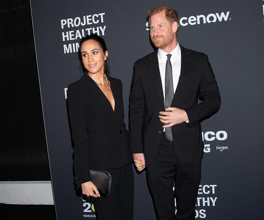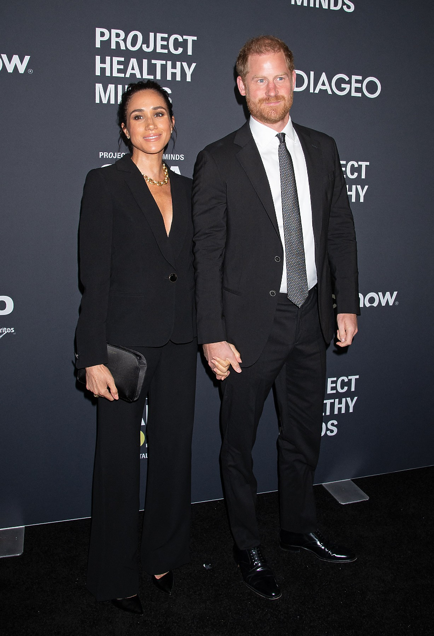 Няколко дни след дебюта си на Седмицата на модата в Париж на шоуто на Balenciaga, херцогинята на Съсекс се появи заедно с принца си в Ню Йорк на гала вечерта на Project Healthy Mind, където заложи на поредната минималистична визия — изцяло черен костюм Armani със сако с дълбоко деколте и съответстващ панталон.