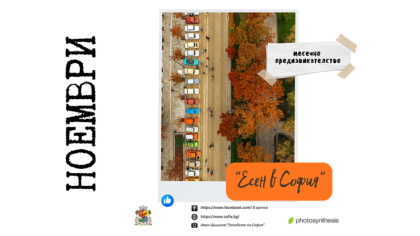 “Есента е втора пролет, защото тогава всяко листо е цвете”. Думите са на Албер Камю, но със сигурност София може да предложи много повече материал за снимки от есенните листа. Фотоконкурсът „В крачка“ посреща ноември с предизвикателството „Есен в София“. Мрачна или слънчева, с ботуши или по тениска, меланхолична или весела – как виждаш столицата?